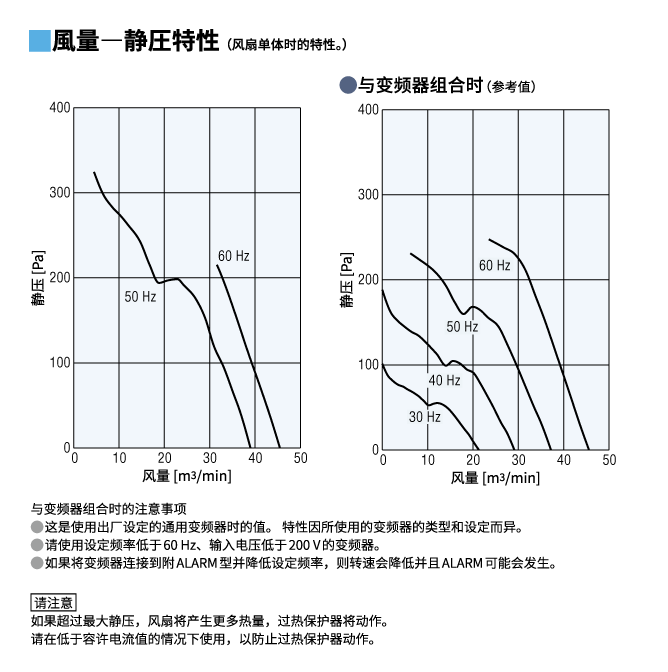 | 温度上升 | 在常温常湿条件下最大风量时连续运行后,当温度稳定时,使用温度计法测量外壳的值在30℃以下。 | |||||
