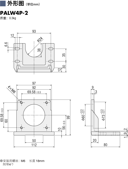 | 说明 | 安装尺寸85 mm电动机用 L型底座。 |