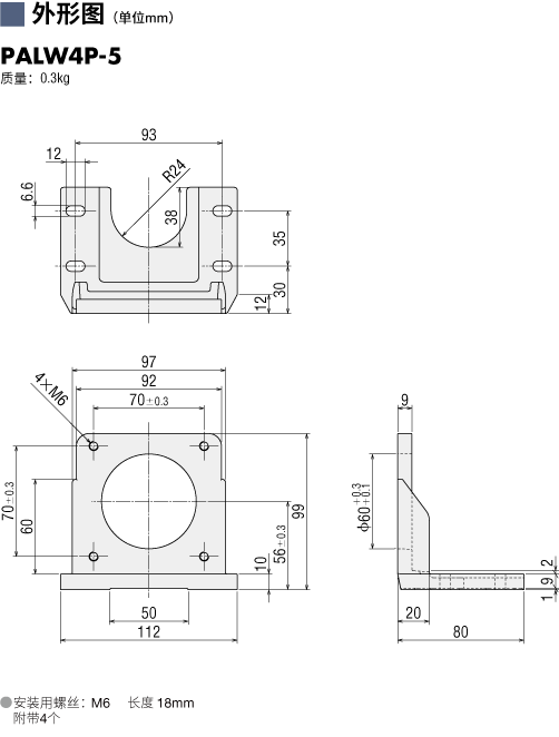 | 说明 | 安装尺寸85 mm电动机用 L型底座。 |