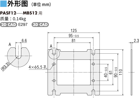 | 说明 | 离心式风扇排风口侧固定用的安装底座。(MBS12用) |