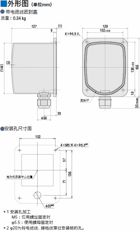 | 说明 | 保护电动机的外盖。对应保护等级IP66规格,在水和灰尘飞散的环境中也可以使用。 |