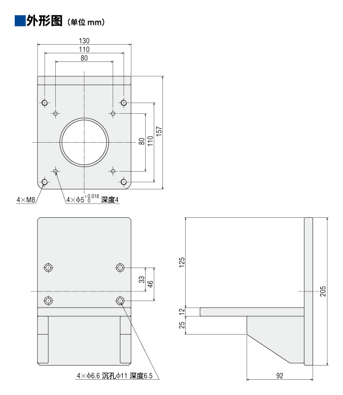 说明 可用于3轴SCARA机器人的安装底座。(THK CO., LTD.生产的传动装置SKR46A带护盖用)