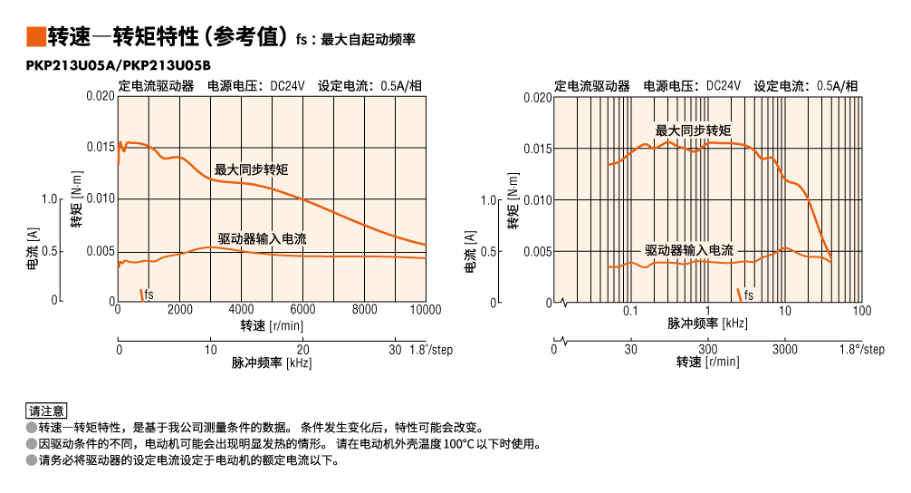 - 全步进、无负载时的值(根据负载大小而变化)。