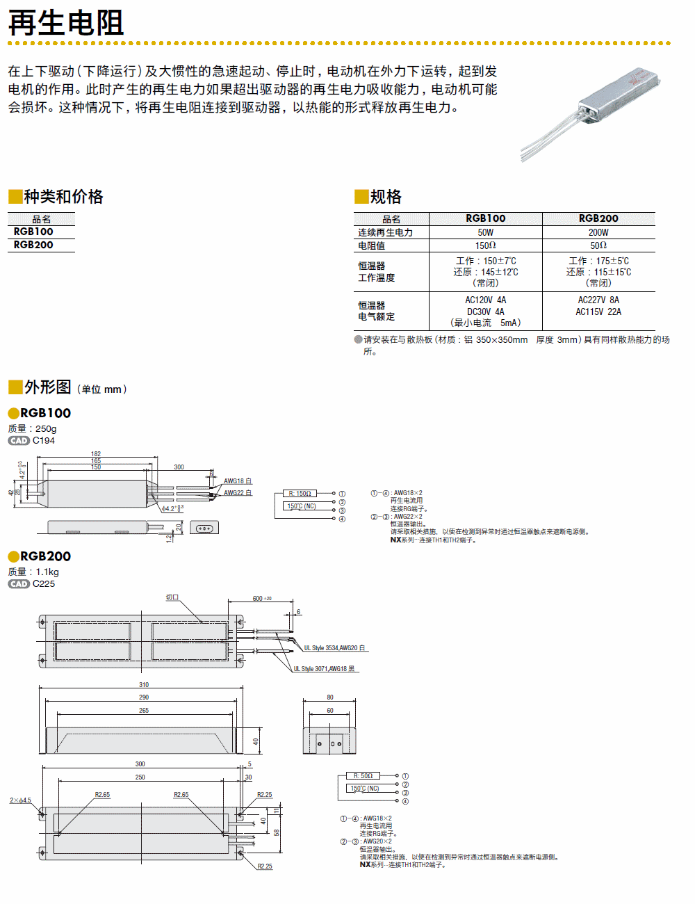 说明 进行上下驱动或大惯性驱动时,与驱动器连接,再生电力以热能量形式释放。