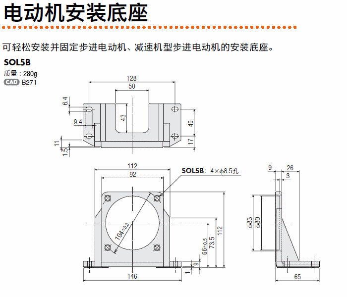 电动机安装底座 SOL5B 14个工作日 285.00 257.00