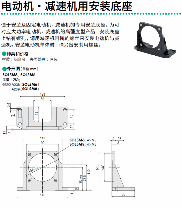 电动机安装底座 SOL5M8 14个工作日 247.00 222.00