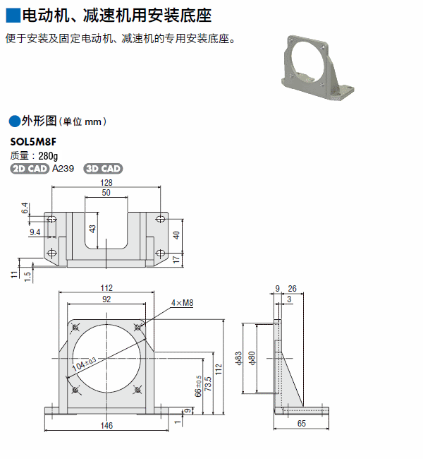 电动机安装底座 SOL5M8F 14个工作日 196.00 176.00
