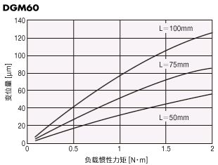 图表中的变位量显示负载惯性力矩按固定方向作用时,在距离旋转平台旋转中心的L位置上的变位。