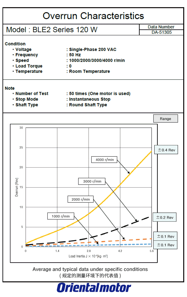 在这里,我们将介绍使用无刷电动机的过转特性(代表值)来计算停止精度的方法,以及提高停止精度的有效使用方法。