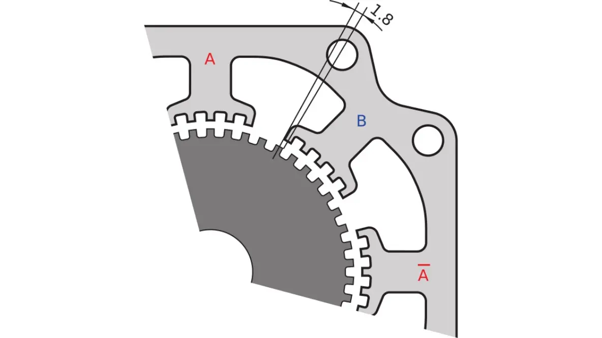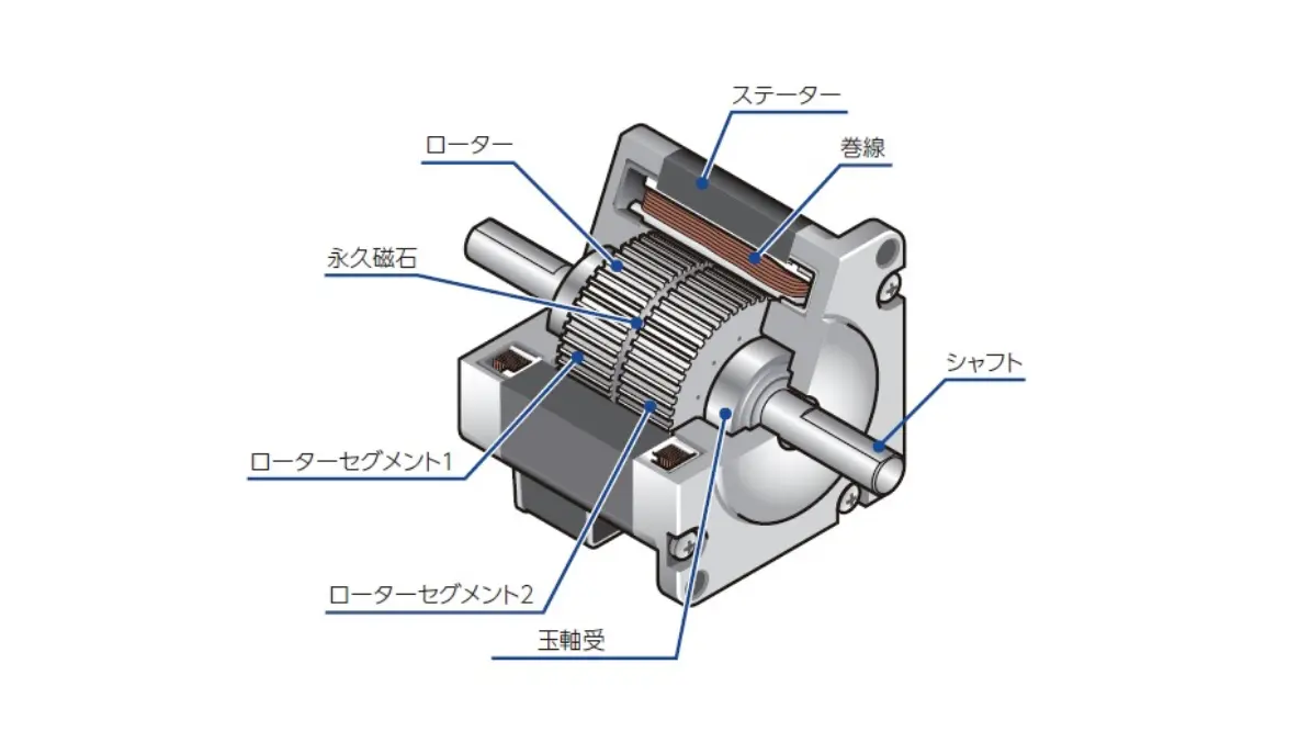 定子和转子都设有凹凸形状的小齿,并且以一定的间隔排列。通过这些小齿实现了高精度的定位。在保持小齿获得的的高分辨率的同时,通过磁铁获得了高转矩。