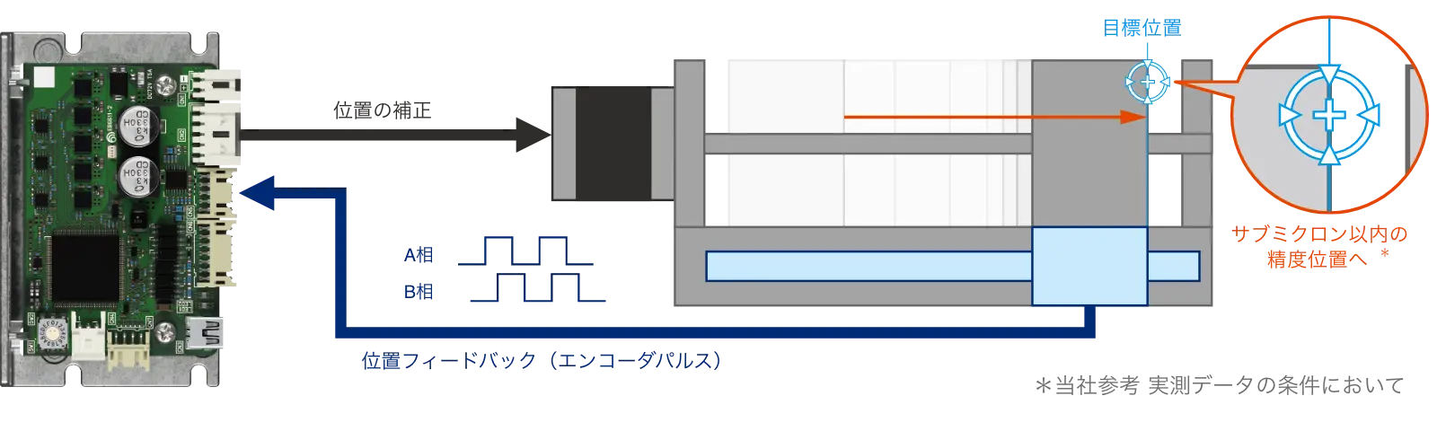 保持步进电动机定位控制的便利性,通过外部传感器组合,可以实现高精度的定位运行。有助于需要更高精度定位的设备。